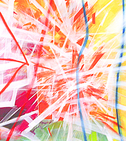 Das Acrylbild wurde in zwei Abschnitte gemalt: Zunächst entstand die abstrakte Malerei, erst darauf wurden die Linien gezeichnet.