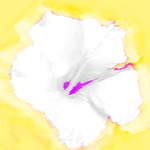 Das Motiv wurde deckend aber auch lasierend gemalt. Aufgrund seiner meist flächigen Malweise (durch das Fehlen von Farbübergängen) kannst du es sehr leicht mit Acrylfarben umsetzen. Die bunten, reinen Farben und der Komplementär-Kontrast von Violette und Gelb steigert die Leuchtkraft und den Ausdruck der Blume. Die weißen Lasuren unterstützen den zarten, luftigen Charakter der Hibiskus-Blüte. |