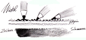 Über Maleigenschaften, Rubbing, Zeichnen u. Radieren